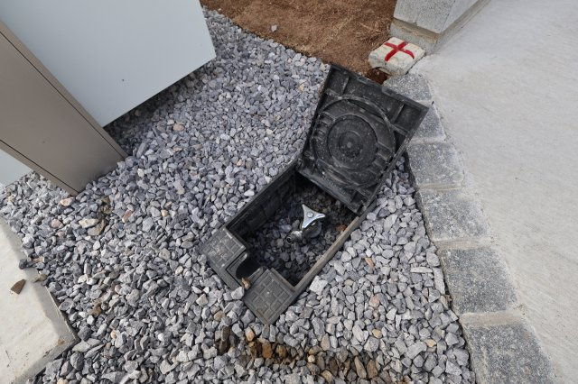電柱が敷地内に入っています。 撮影日 2025年10月27日 14:30 曇り