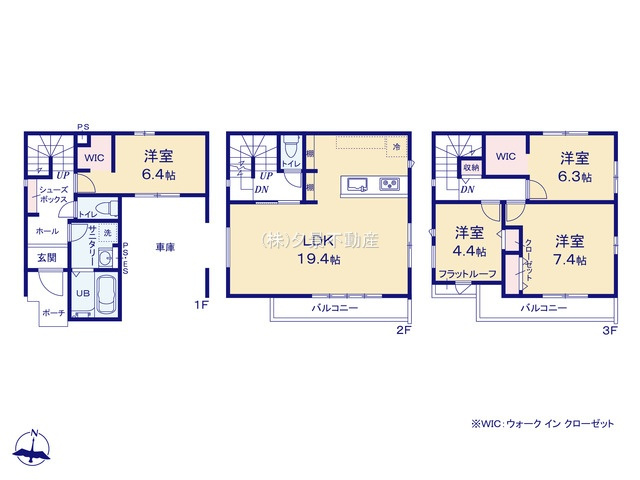 システムキッチン 食器洗機 洗浄便座 カウンターキッチン トイレ2ヶ所 LDK15帖以上 フローリング 全室フローリング 火災警報器(報知機) 洗面所独立 Wクローゼット 各室収納スペース 収納 バルコニー ガレージ 南面バルコニー