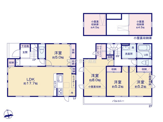 照明器具 システムキッチン 洗浄便座 カウンターキッチン トイレ2ヶ所 グルニエ LDK15帖以上 フローリング 全室フローリング 火災警報器(報知機) 洗濯機置場 パントリー 洗面所独立 各室収納スペース 納戸 収納 バルコニー