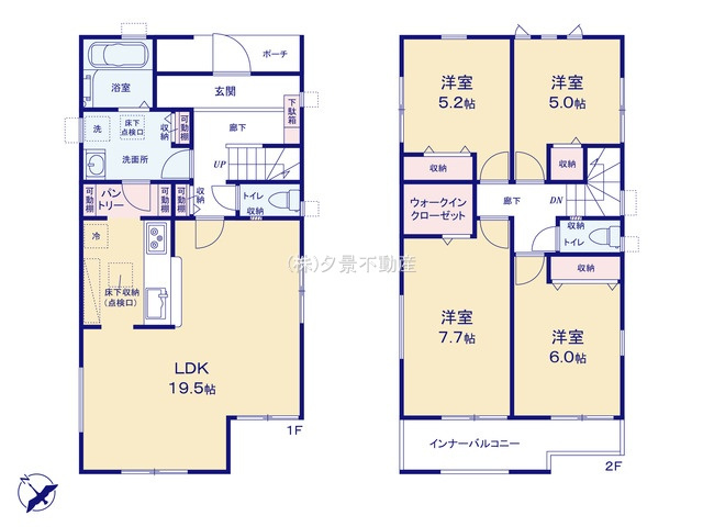 照明器具 システムキッチン 洗浄便座 カウンターキッチン トイレ2ヶ所 LDK15帖以上 フローリング 全室フローリング 浄化槽 火災警報器(報知機) 洗面所独立 Wクローゼット 床下収納 各室収納スペース シューズクローク 洗面室収納